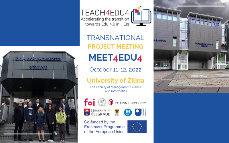 The consortium of the TEACH4EDU4 project held a 4th project meeting in the hybrid form at the University of Žilina, Faculty of Management Science and Informatics, on October 11th and 12th 2022.